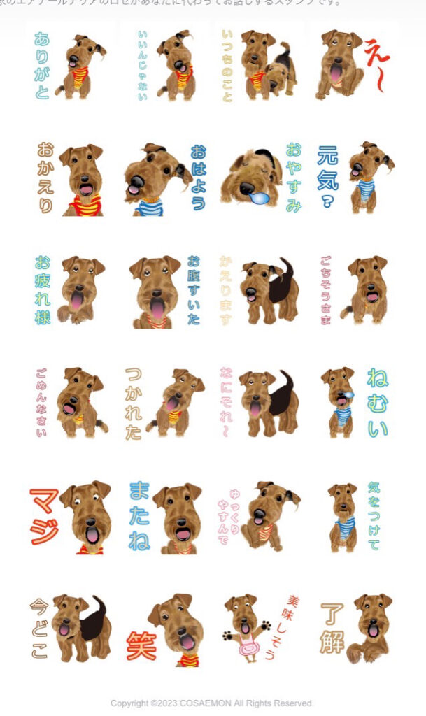 エアデールテリアがあなたに代わってお話しするスタンプです。
